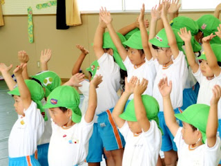 園庭では 子ども達が 元気いっぱい遊んでいますみんな揃ったら 園庭では 年少さんが ダンスタイム♫