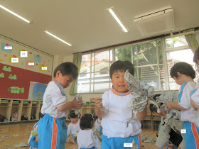 年長ゆり組さんのお部屋にいくと 先生が何か話しています