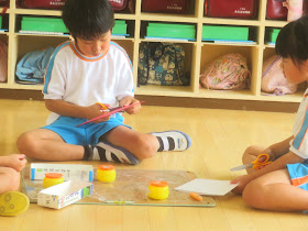 梅雨の時期は外であまり遊べないので 今日は貴重です裸足になる年少さん